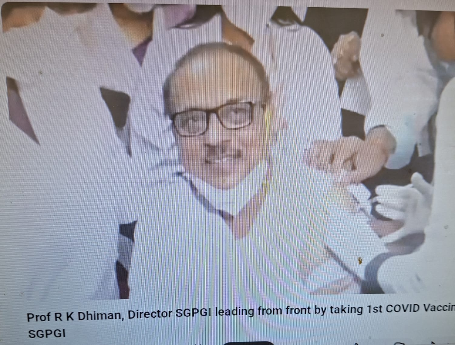Prof R K Dhiman, Director SGPGI leading from front by taking 1st COVID Vaccine at SGPGI |