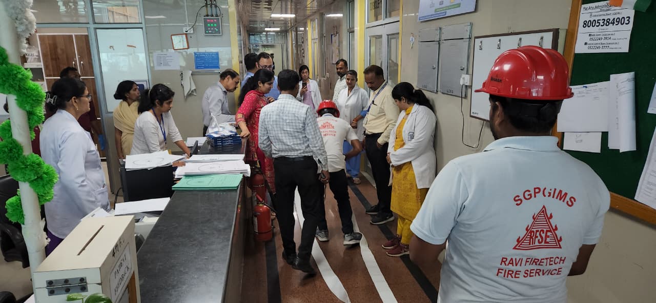A fire mock drill followed by a detailed debriefing session was conducted on 12th March at the Apex Trauma Centre of SGPGIMS to evaluate the emergency response preparedness and strengthen disaster management systems within the hospital.