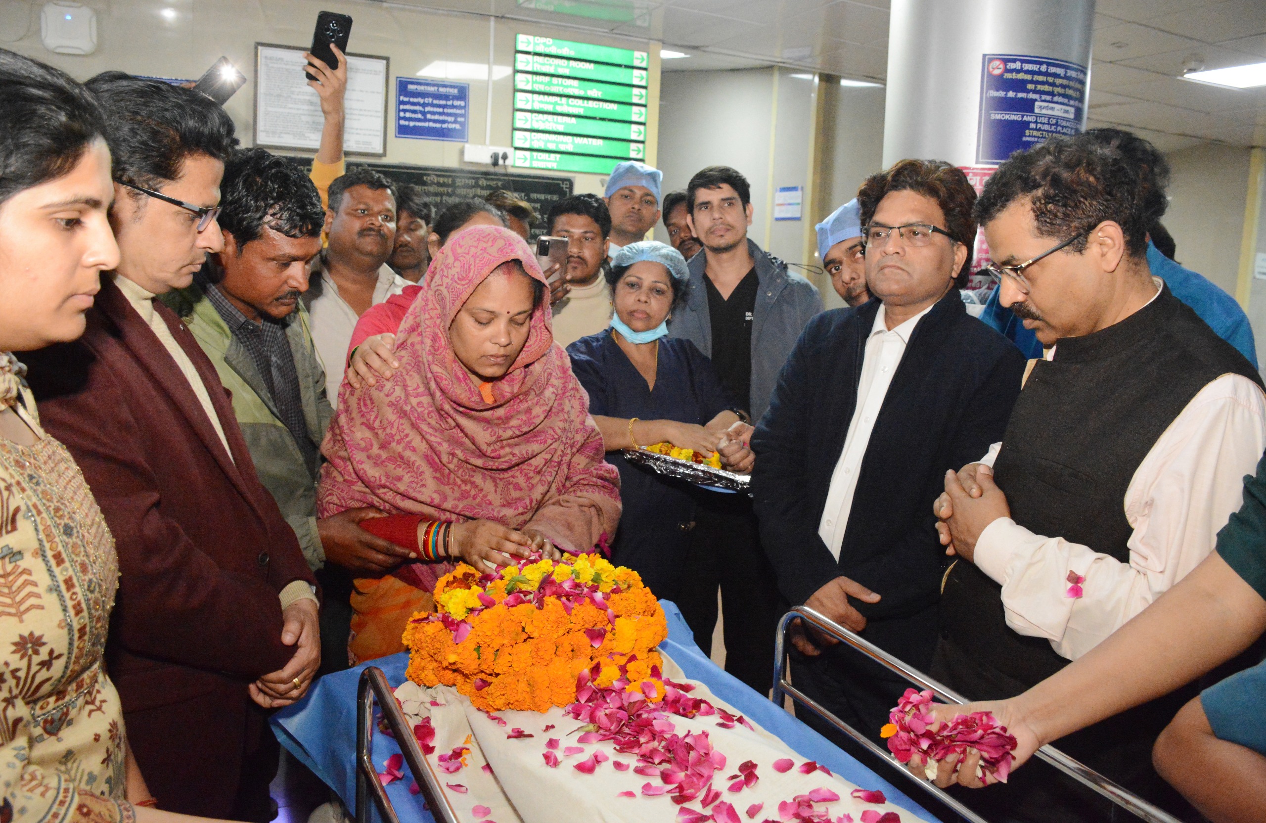 A Guard of Honour was solemnly accorded to the donor as a mark of profound respect in the august presence of Director, Sanjay Gandhi Postgraduate Institute of Medical Sciences, Dr. R. K. Dhiman; Chief Medical Superintendent, Dr. Devendra Gupta; Medical Superintendent & Joint Director, State Organ and Tissue Transplant Organization - Uttar Pradesh, Dr. Rajesh Harshvardhan; and Chief, Apex Trauma Centre, Dr. Arun Srivastava, along with his team.