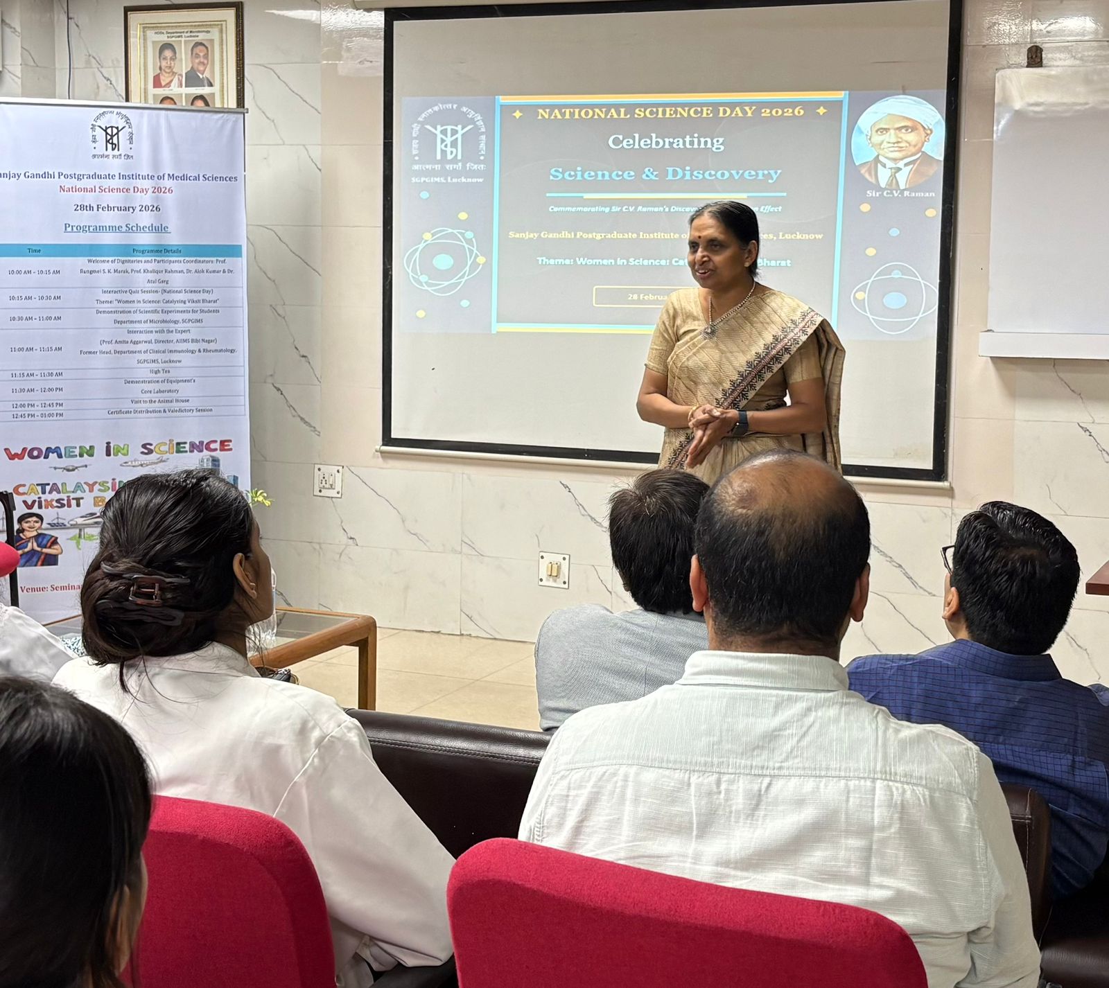 The Department of Microbiology and Research Cell of Sanjay Gandhi Postgraduate Institute of Medical Sciences (SGPGI), Lucknow, celebrated National Science Day 2026 on Saturday, 28th February 2026 in the Seminar Room, Department of Microbiology, SGPGI based on the national theme: “Women in Science: Catalysing Viksit Bharat.”