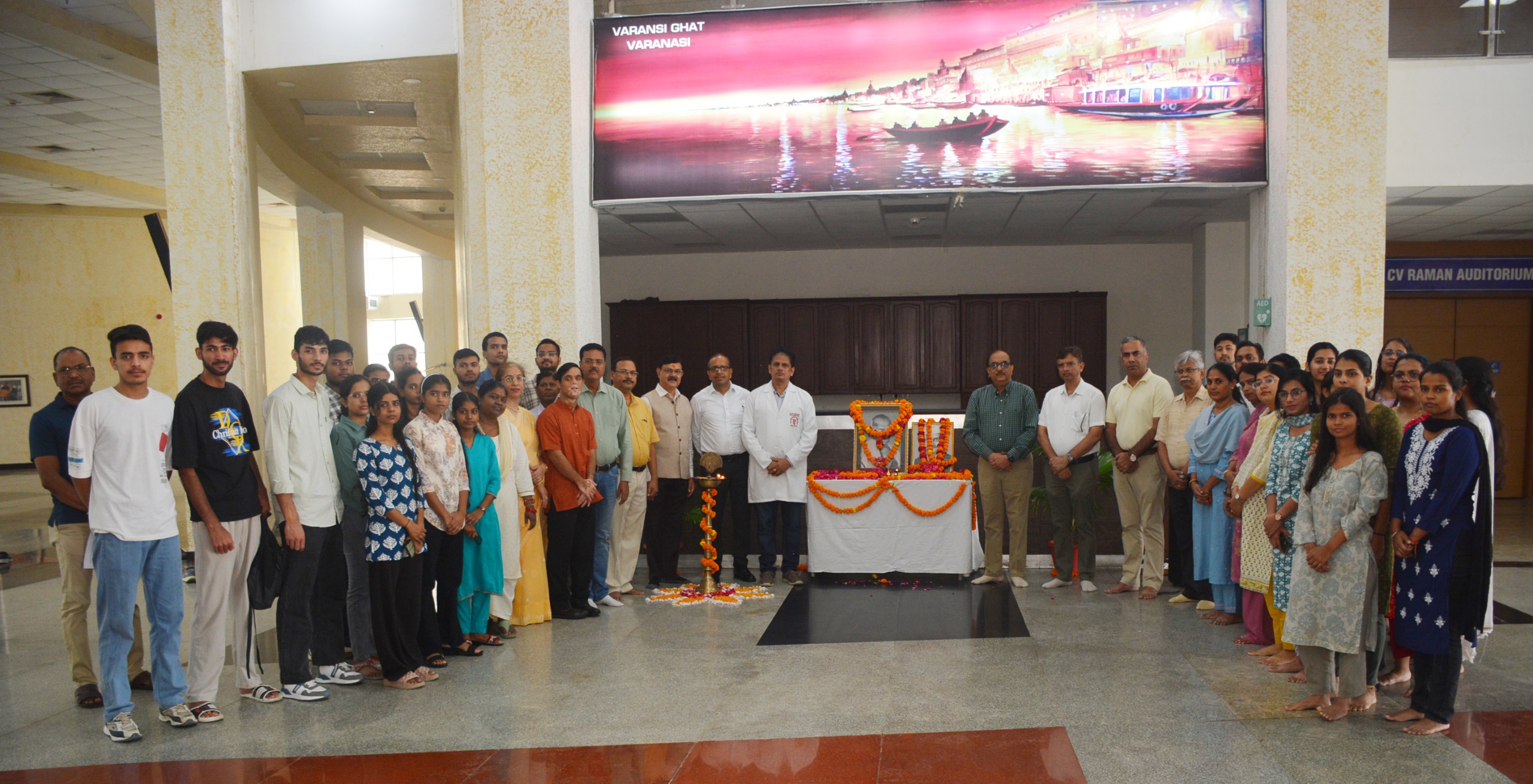 The commemorative event at SGPGIMS began at 11:00 AM with lamp lighting and floral tributes to the portraits of Mahatma Gandhi and Lal Bahadur Shastri by Prof. R. K. Dhiman, Director, SGPGIMS, Shri Prakash Singh, Joint Director (Material Management), SGPGIMS, Colonel Jaydeep Singh Ghuman, Joint Director Administration, SGPGIMS and Prof. R. Harsvardhan, Medical Superintendent, SGPGIMS.