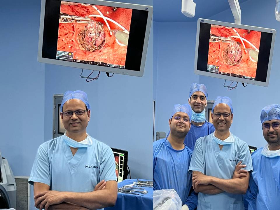 According to Prof Uday Pratap Singh, traditionally, bladder tumors of this nature are managed via the transurethral, open or laparoscopic approach, requiring creation of pneumoperitoneum, extensive dissection around and behind the urinary bladder, and working dangerously close to vital structures. In this particular case, the tumor was in close proximity to the right ureter, placing it at significant risk of injury during conventional surgery.