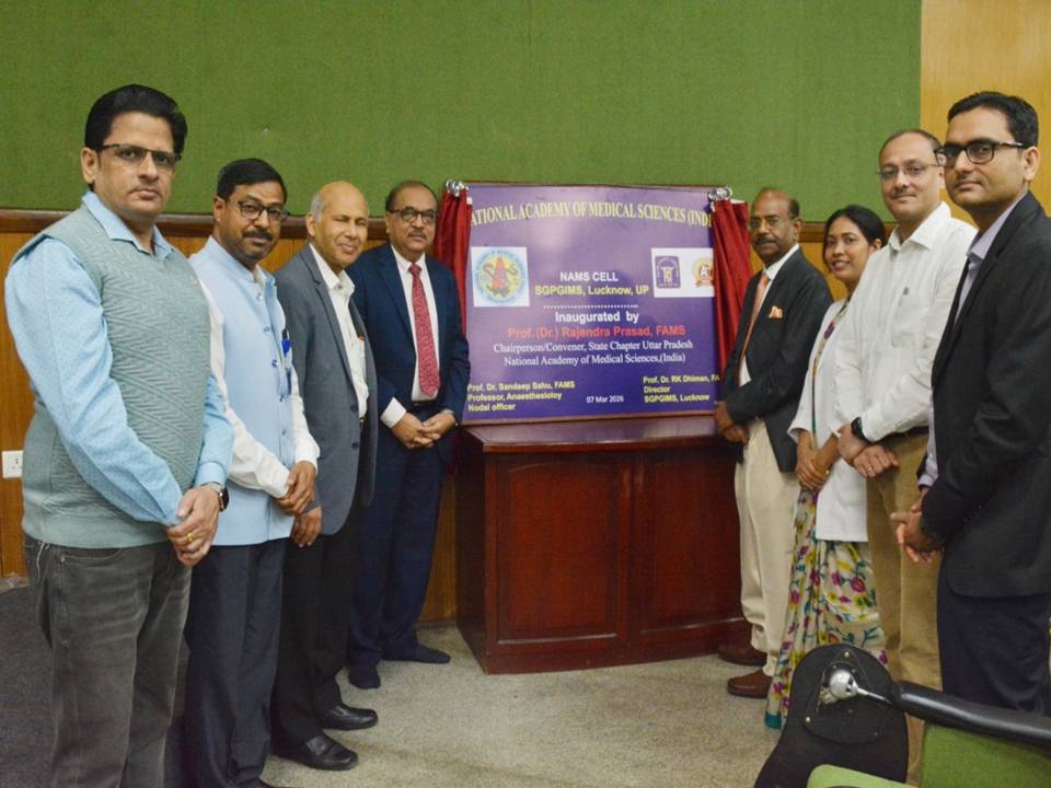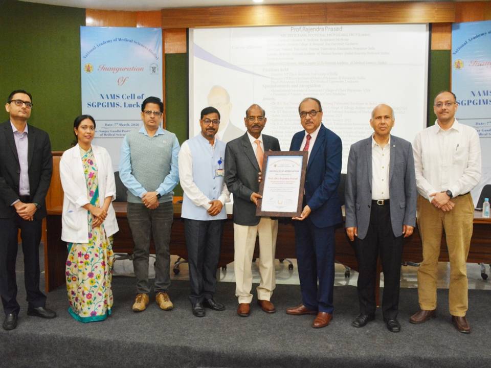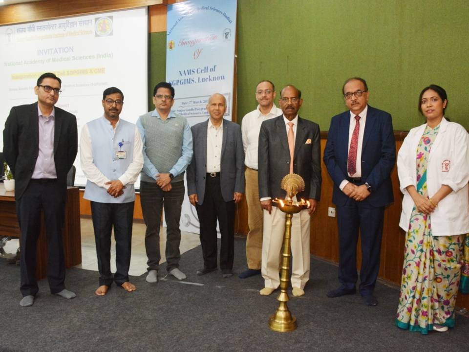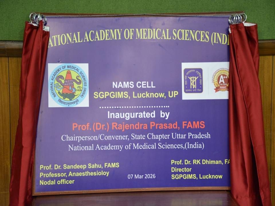 The NAMS Cell of SGPGIMS was inaugurated on 7 Mar 2026 at Sanjay Gandhi Postgraduate Institute of Medical Sciences, Lucknow by Prof. Rajendra Prasad, FAMS, Padam Shri ,Chairman, NAMS UP State and Prof. RK Dhiman, FAMS, Director, SGPGIMS and Patron-NAMS Cell of SGPGIMS, Prof. Shaleen Kumar, Dean, Prof. Sanjay Dhiraj, HOD, Anaesthesiology, Col. Varun Bajpai, Executive Registrar, Prof. Sandeep Sahu, FAMS, Nodal officer of NAMS Cell of SGPGIMS and Dr Divya Srivastava and Dr Surendra Singh, Member of NAMS Cell. The Inaugural CME was conducted by above faculty members that includes the Introduction of NAMS and its functioning. A inaugural lecture on Clinical interpretation of Chest X-rays was delivered by Prof. Rajendra Prasad, Padam Shri, Chairman, NAMS UP State.