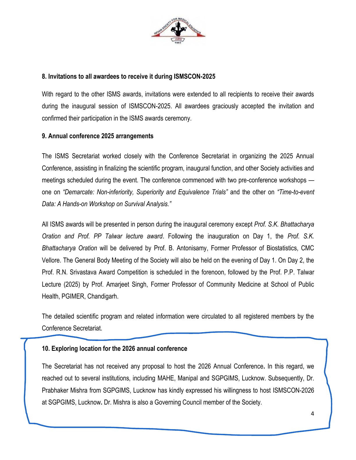 35th Annual National Conference of Indian Society for Medical Statistics (ISMS), November 1-4, 2017, Number of participants: 400