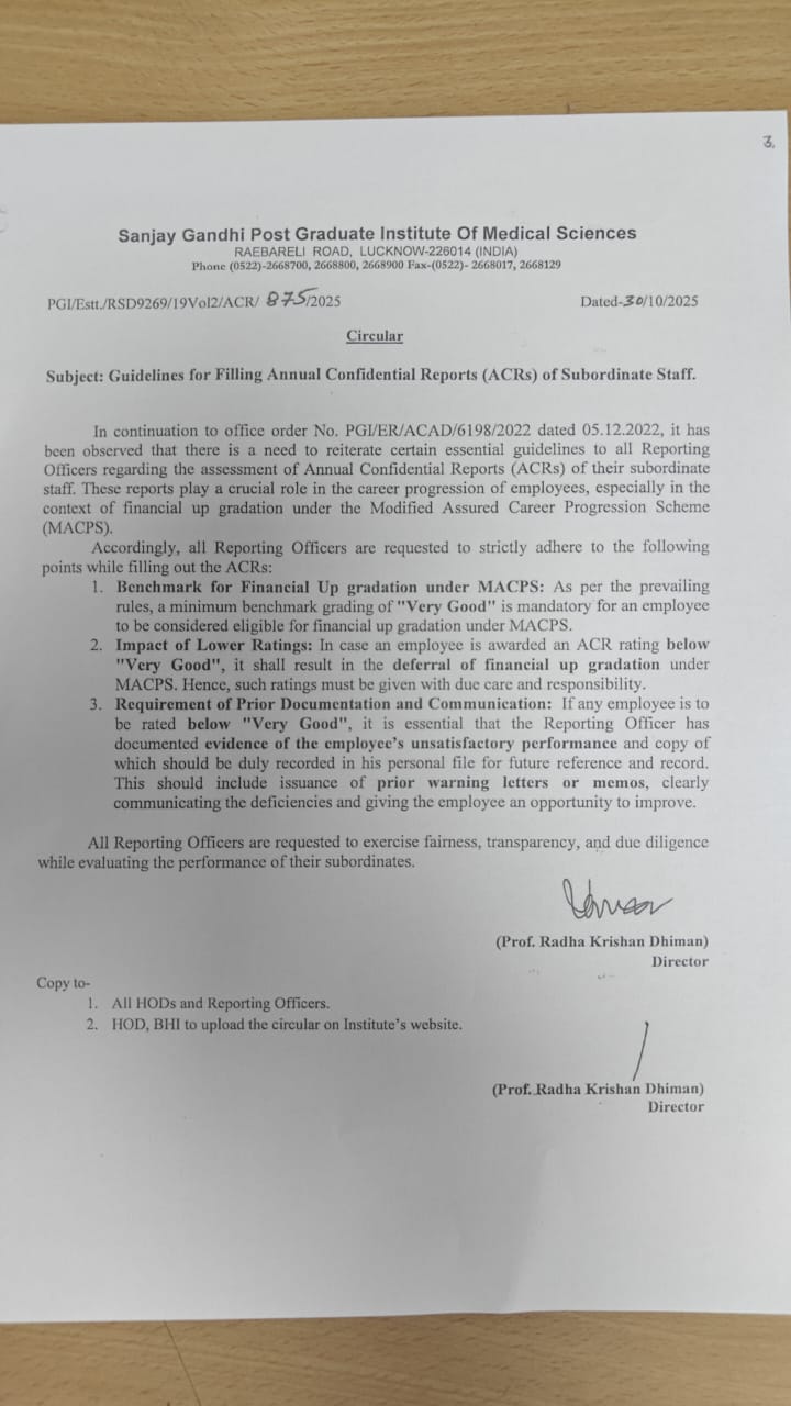 (Diretor's Office): Guidelines for filling Annual Confidential Reports(ACRs) of Subordinate Staff (Uploaded on 02/11/2025)