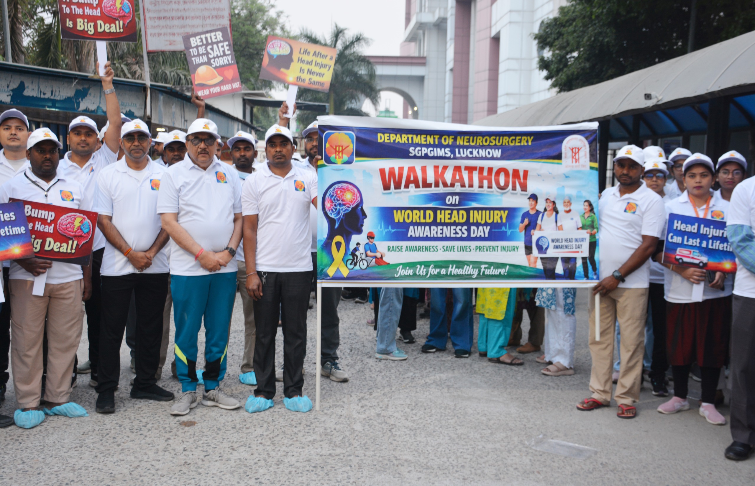 The Department of Neurosurgery at Sanjay Gandhi Postgraduate Institute of Medical Sciences commemorated World Head Injury Awareness Day 2026 today with a well-organized and impactful Walkathon aimed at promoting road safety and raising awareness about the prevention of head injuries. The event witnessed enthusiastic participation from approximately 200 individuals, including faculty members, residents, nursing staff, and students, reflecting a strong institutional commitment to public health advocacy.