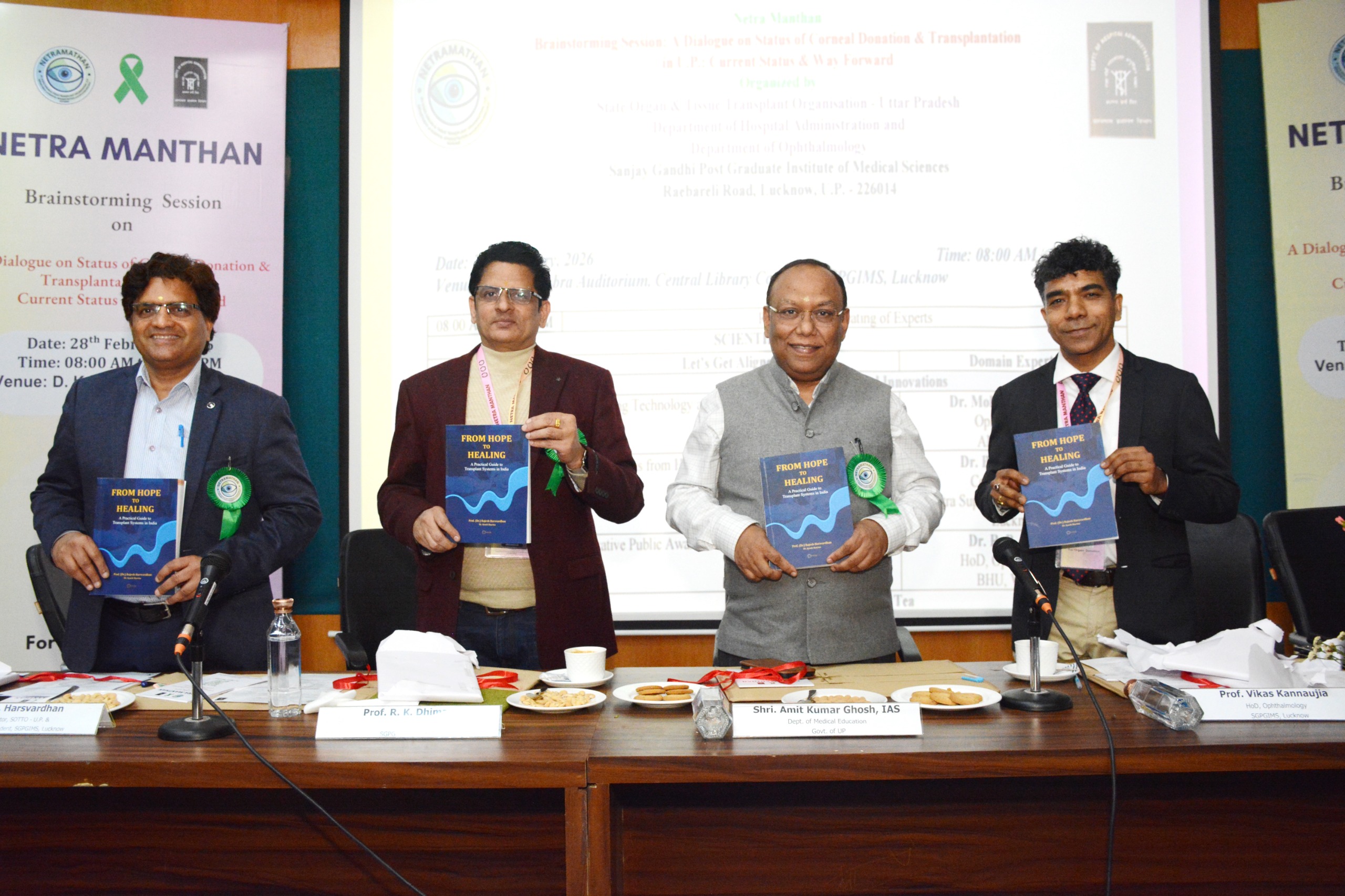 The Inaugural Session also witnessed the formal release of the book “From Hope to Healing: A Practical Guide to Transplant Systems in India” by the esteemed authors Prof. Rajesh Harsvardhan, Joint Director SOTTO-U.P. & Medical Superintendent, SGPGIMS&Dr. Ayush Sharma, Resident, Hospital Administration, SGPGIMS under the guidance of respected Prof. Rajesh Harsvardhan, marking a significant academic milestone of the day. The book was unveiled amidst great appreciation, reflecting the collective efforts of experts dedicated to strengthening corneal donation and transplantation in Uttar Pradesh.