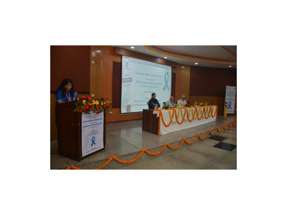 Prof. Rungmei S.K. Marak gave the welcome address and enlightened the audience regarding the importance of this CME and what initiatives we are taking at institute level. Prof. Shaleen Kumar, Dean, talked about the reasons why there is dire need for antimicrobial awareness especially when not to take antibiotics, how can we stop over-prescribing and over the counter use of antimicrobials without prescription.