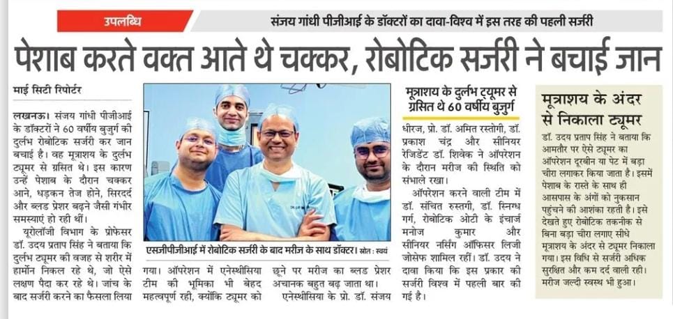 In a landmark achievement for urological surgery, doctors at SGPGIMS, Lucknow have successfully treated a very rare bladder tumor—urinary bladder paraganglioma—using a novel robotic transvesical approach, marking the first such reported case with this technique.